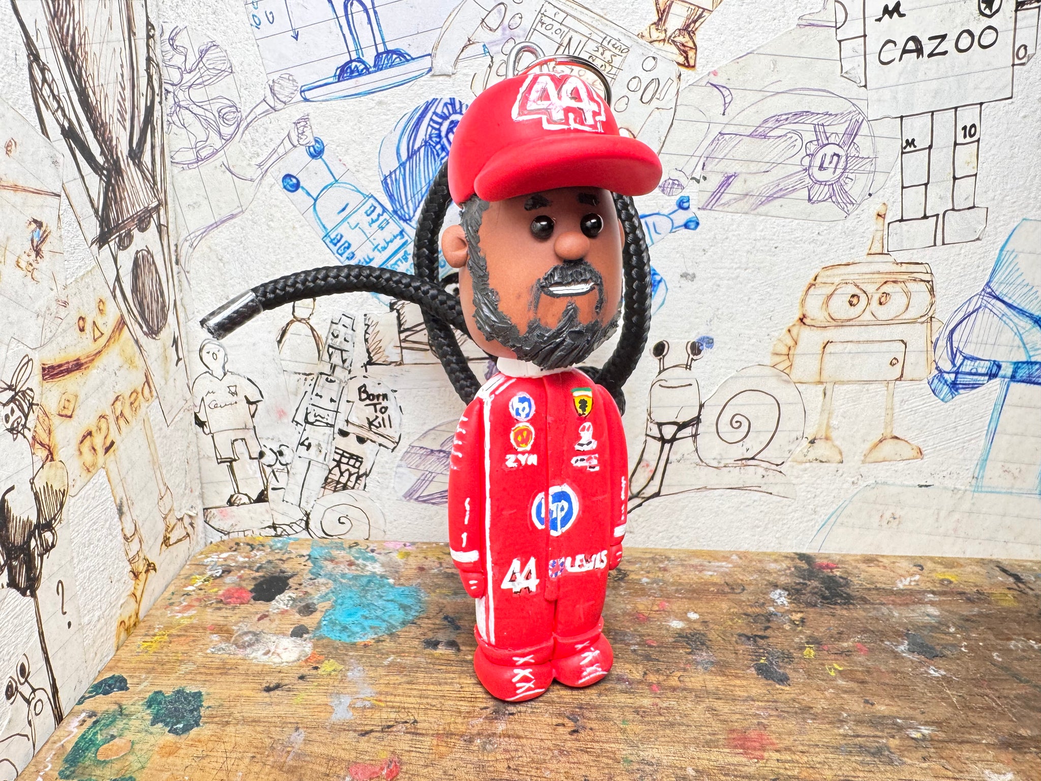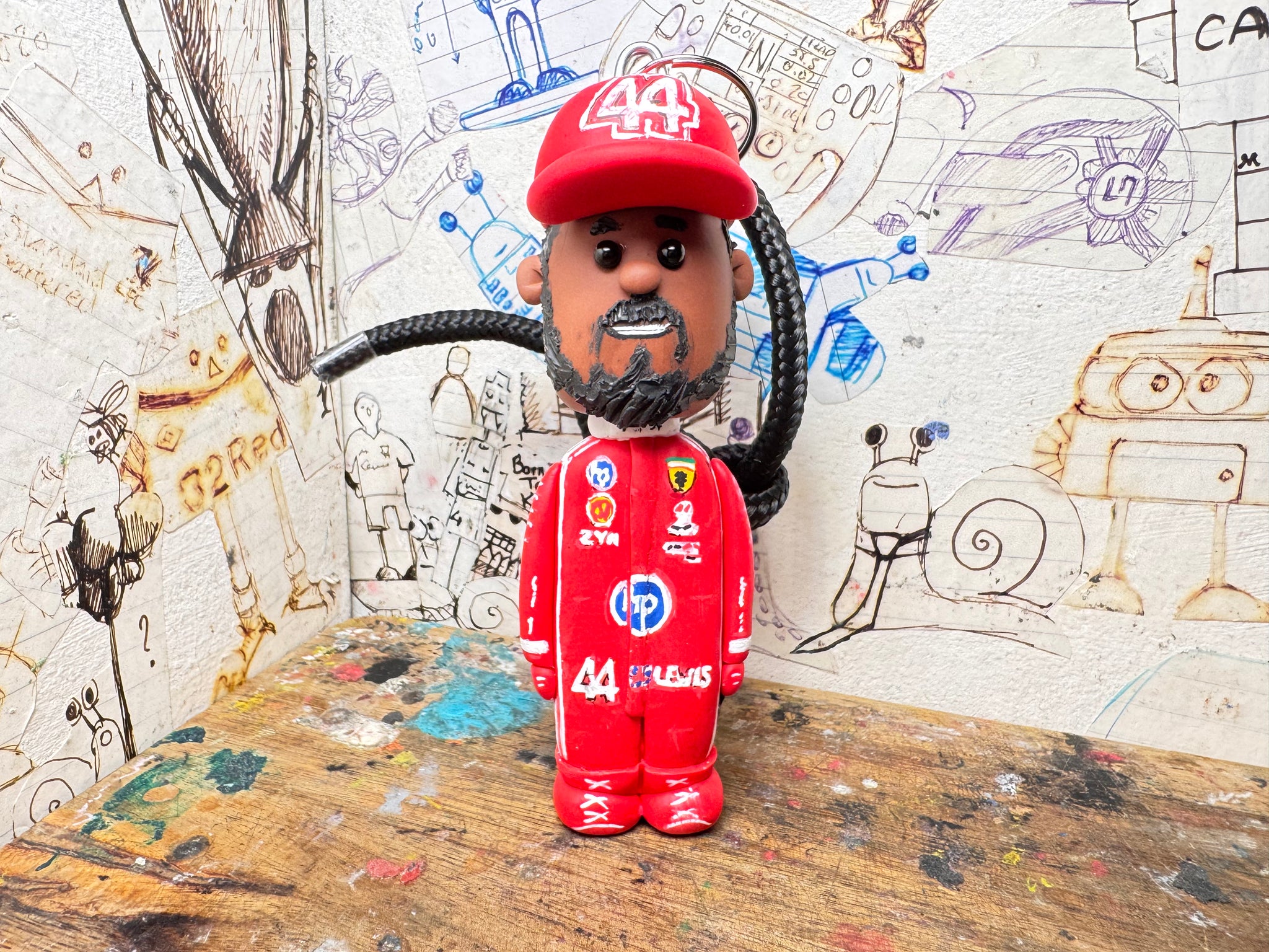 Lewis Hamilton cartoon character car mirror keyring