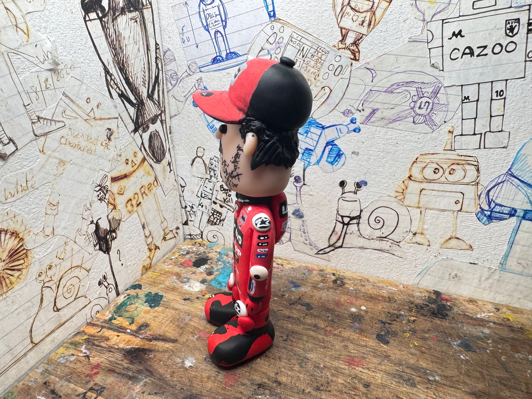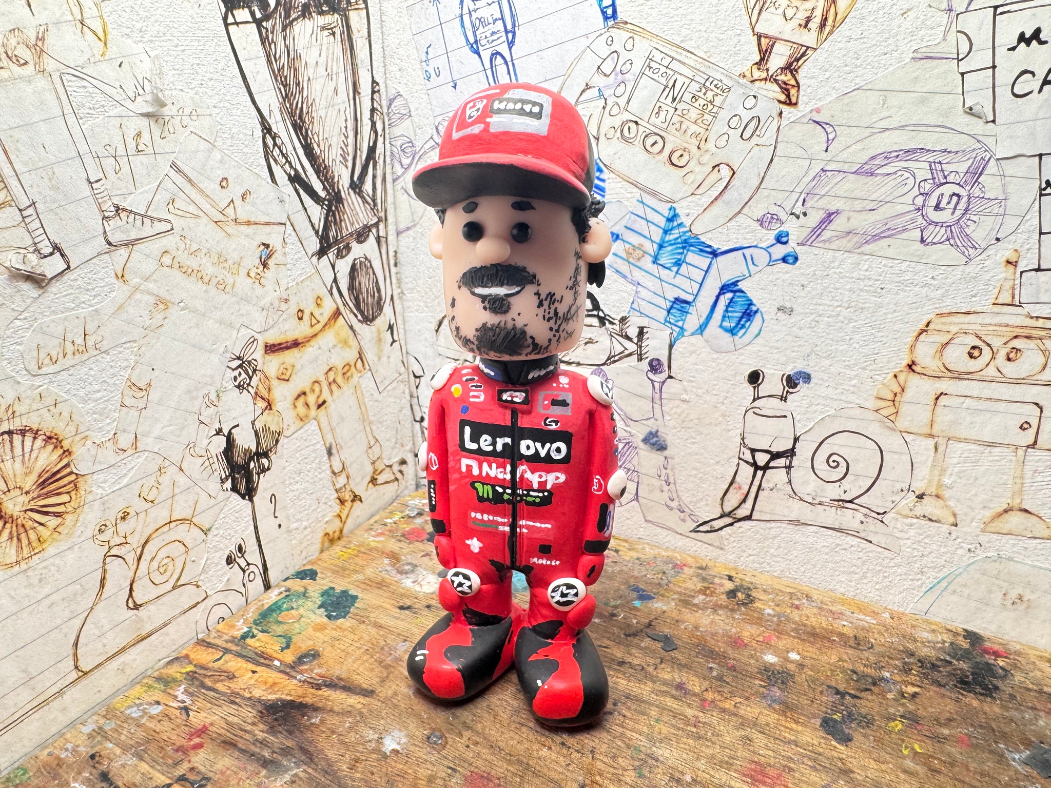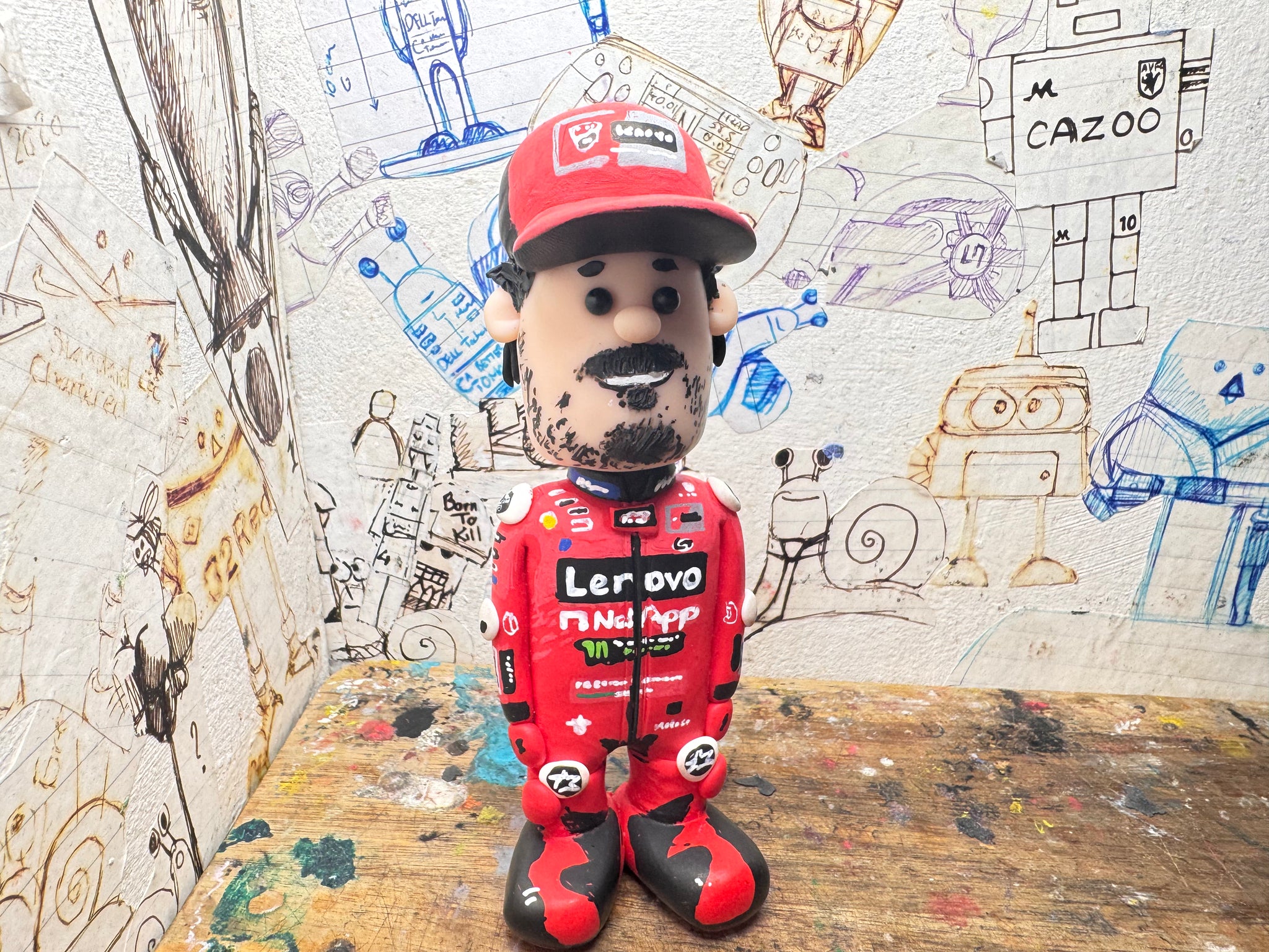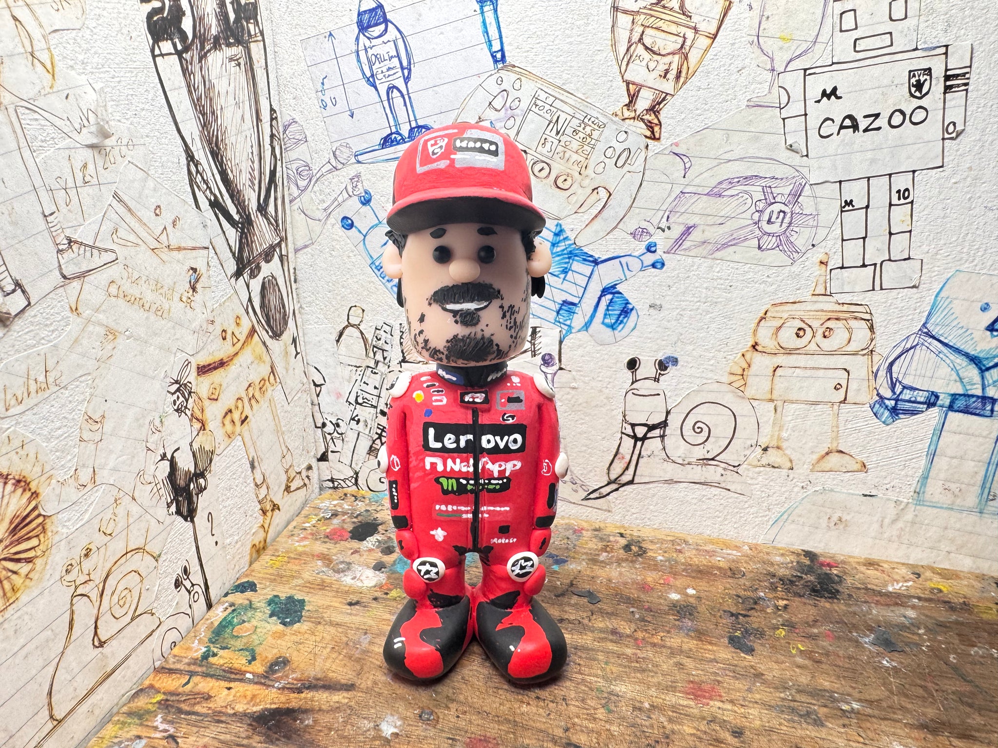 Pecco Bagnaia cartoon character with moving head side to side handmade.